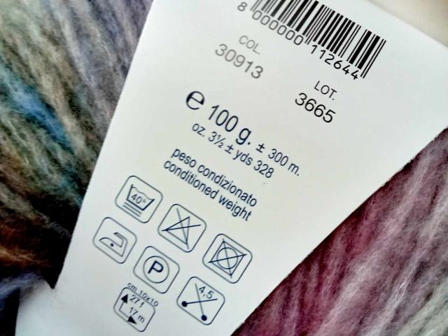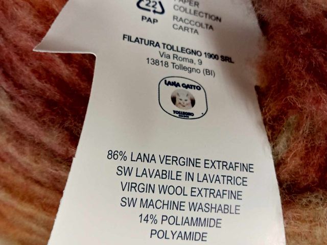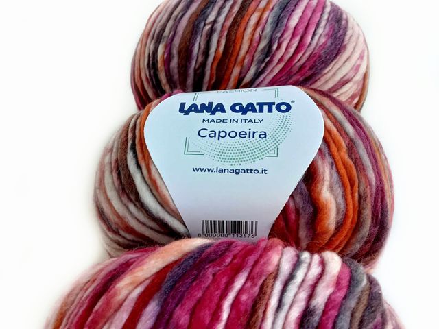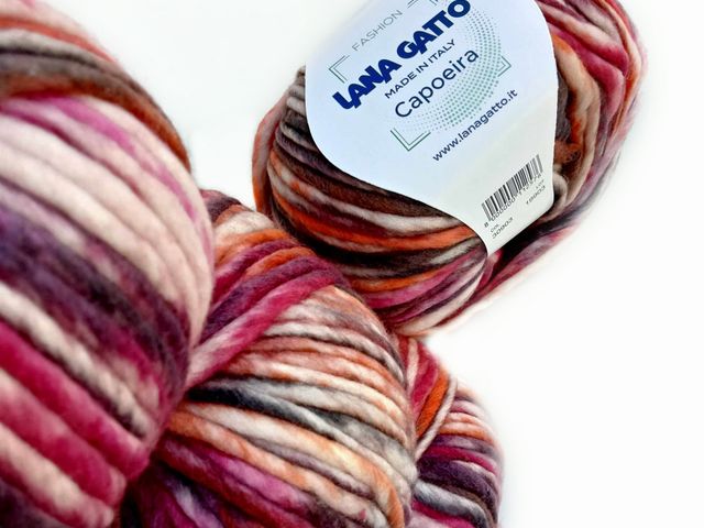 Bellissimo filato fantasia Lana Gatto, 86% lana vergine extrafine, 14% poliammide, peso gomitolo 150 gr, 300 mt. Made in Italy.
