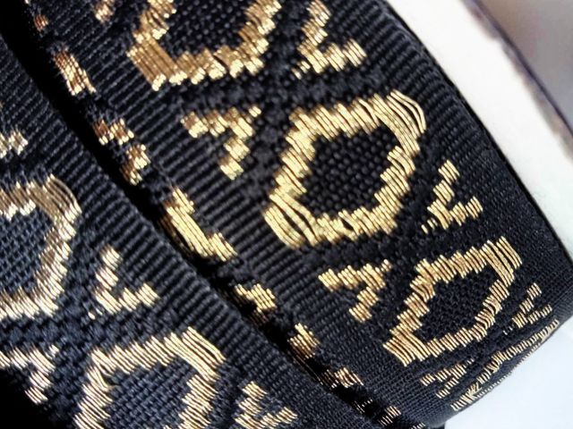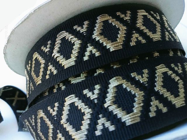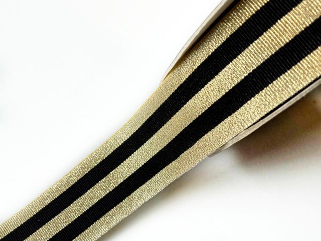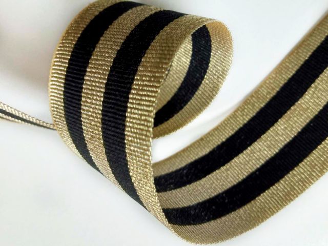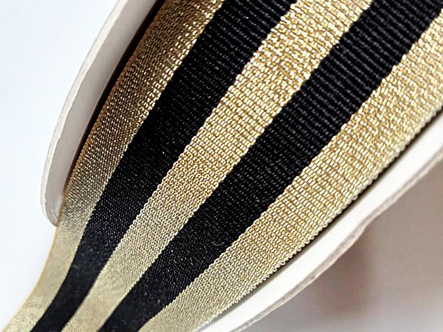 Passamaneria nastro gross-grain oro e nero, altezza 3 cm, composizione; poliestere. Materiale per creare, abbellire, personalizzare capi di abbigliamento, arredamento, hobby. Made in Italy