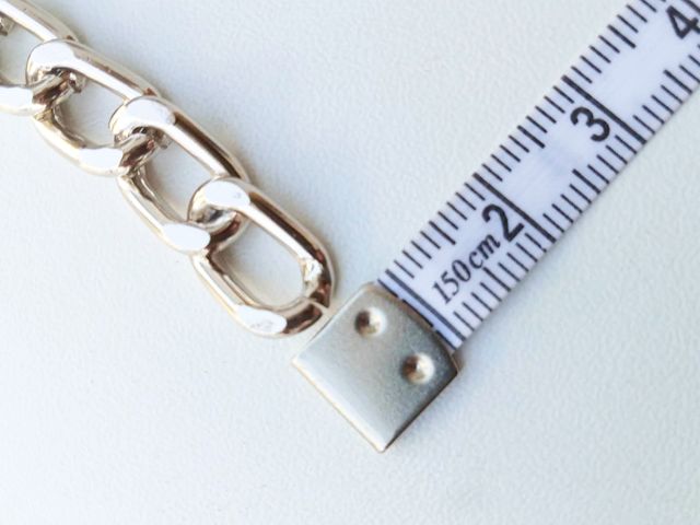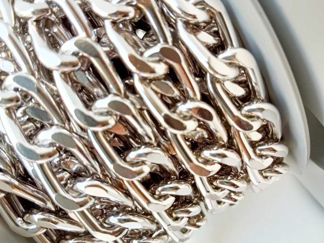 Catena in metallo, disponibile nel colore argento, altezza cm 1, lunghezza 1 mt. Made in Italy.