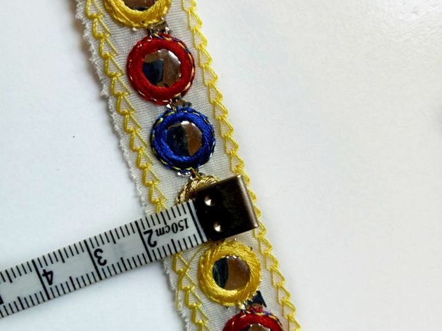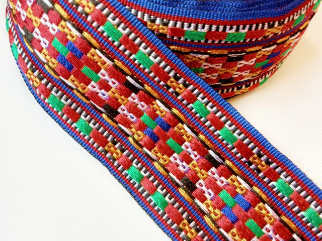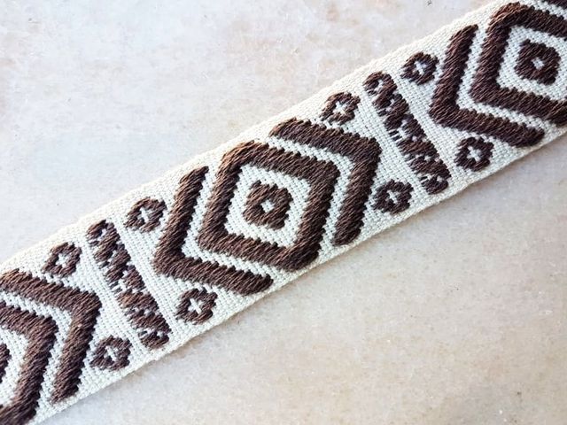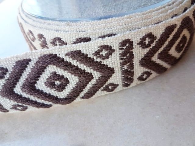 Bellissima passamaneria etnica, altezza 4 cm. poliestere. Made in Italy. Ideale per abbigliamento, arredamento, hobby.