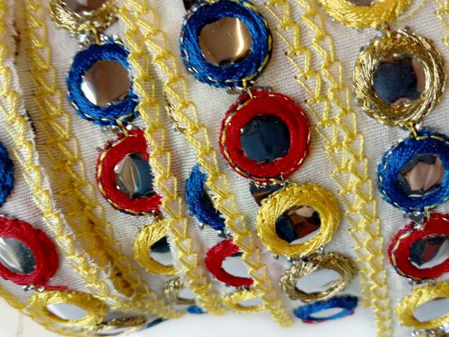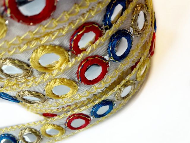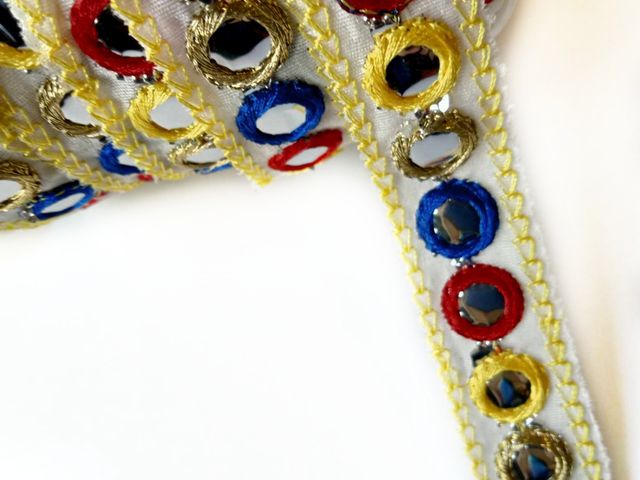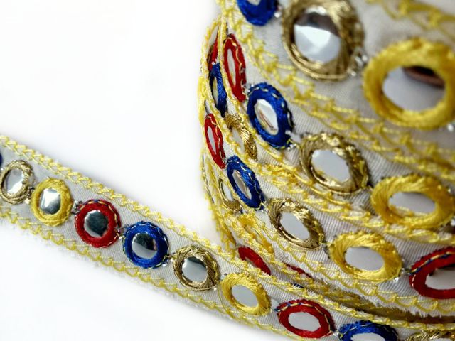 Bellissima passamaneria specchietti, altezza 20 mm. poliestere. Made in Italy. Ideale per arredamento, abbigliamento, hobby.