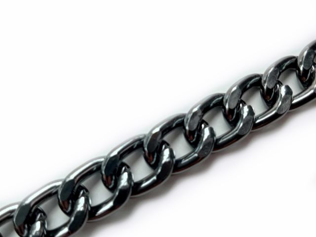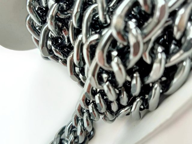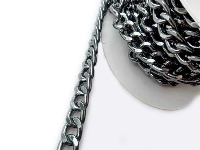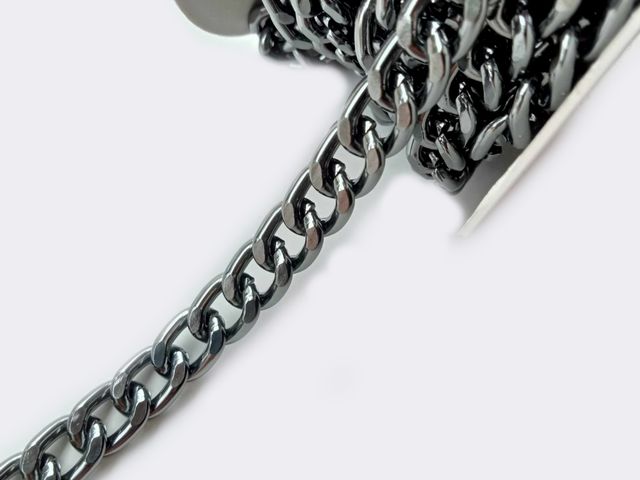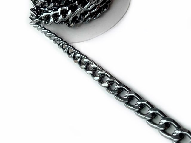 Catena in metallo, disponibile nel colore canna di fucile, altezza cm 1, lunghezza 1 mt. Made in Italy.