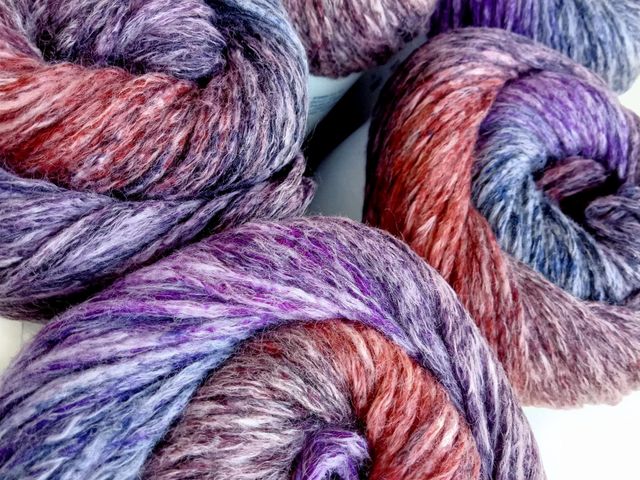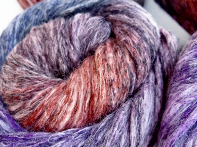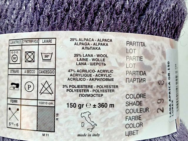 Maxi gomitolo lana, disponibile nel colore glicine, composizione tessile; 25% alpaca, 25% lana, 47% acrilico, 3% poliammide, peso gomitolo 150 gr. lunghezza 360 mt. Made in Italy