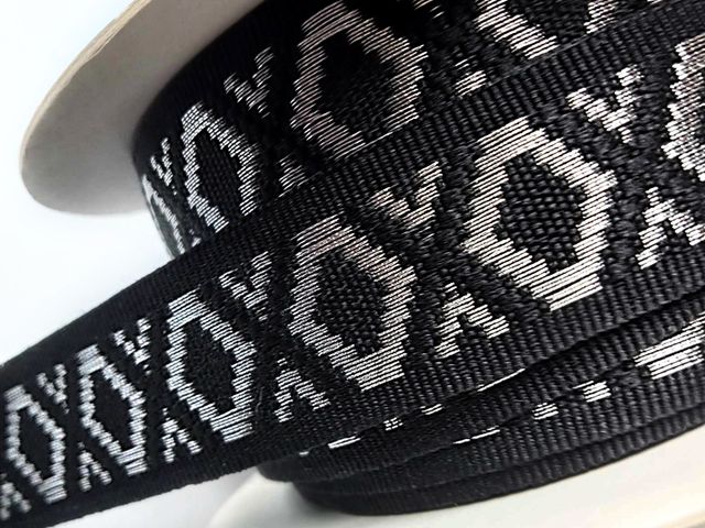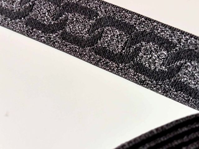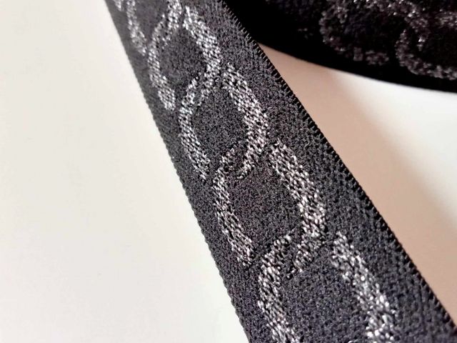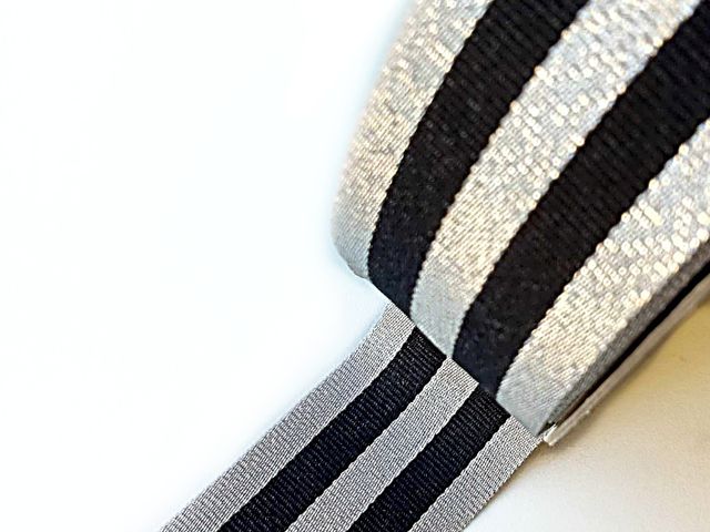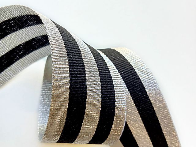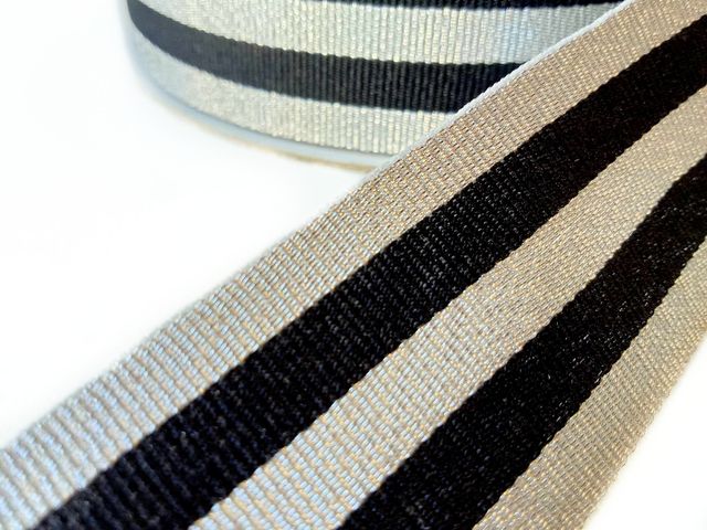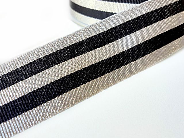 Passamaneria nastro gross-grain argento e nero, altezza 3 cm, composizione; poliestere. Materiale per creare, abbellire, personalizzare capi di abbigliamento, arredamento, hobby. Made in Italy