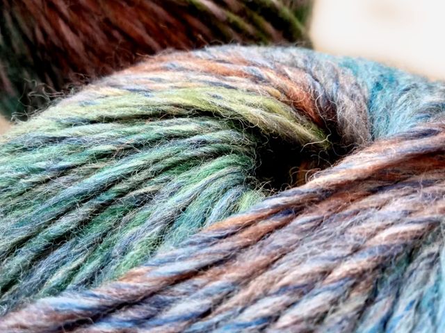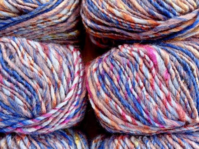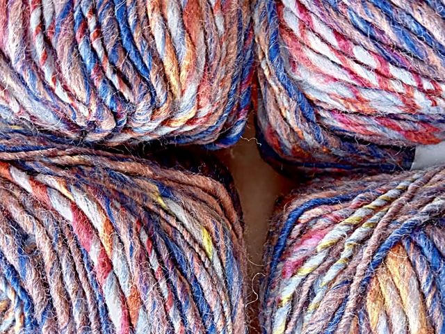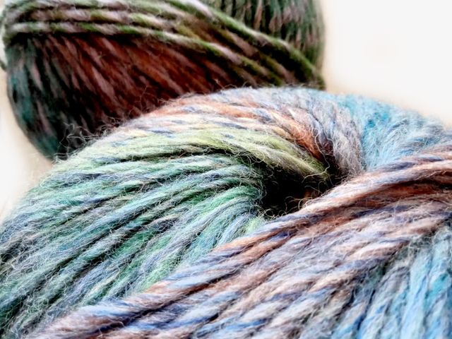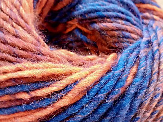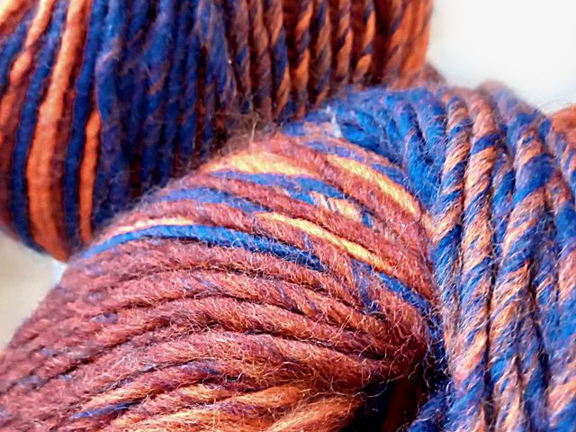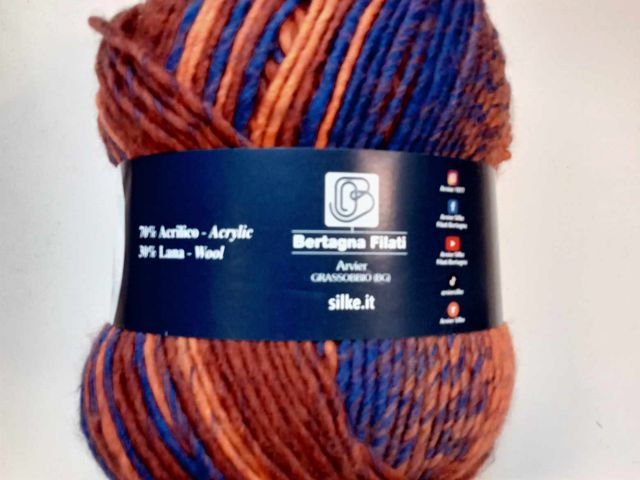OFFERTA SCONTO; maxi gomitolo disponibile nel colore rame-blu, composizione tessile; 30% lana 70% poliestere, peso gomitolo 150 gr. lunghezza 225 mt. ferri consigliati n° 6,5/7,5. Made in Italy