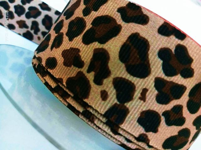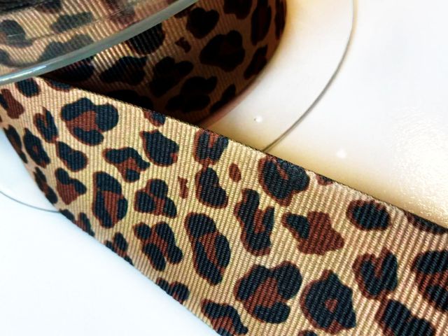 Passamaneria nastro gross-grain animalier, acetato-poliestere, altezza 35 mm. iadeale per abbigliamento, arredamento, hobby. Made in Italy