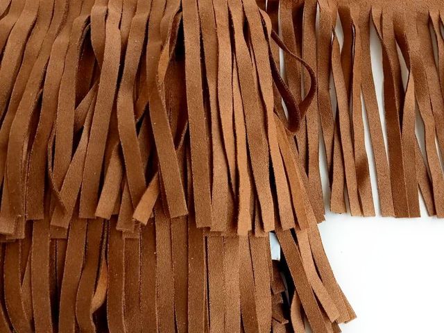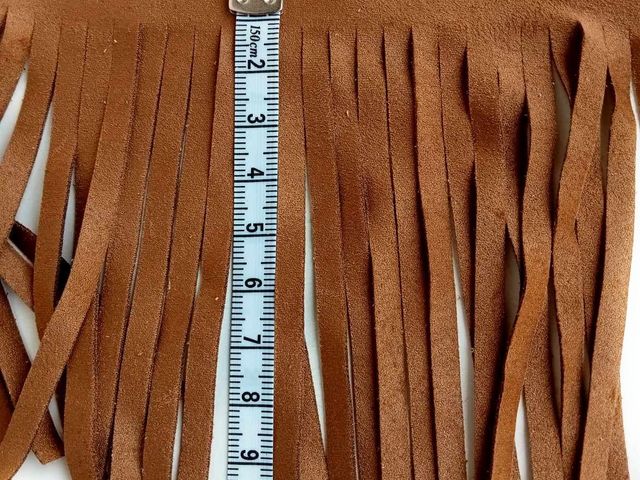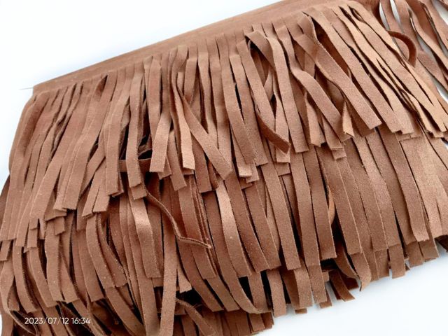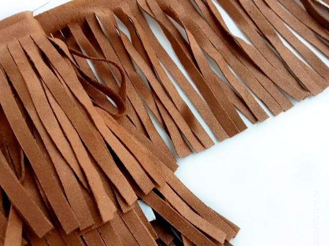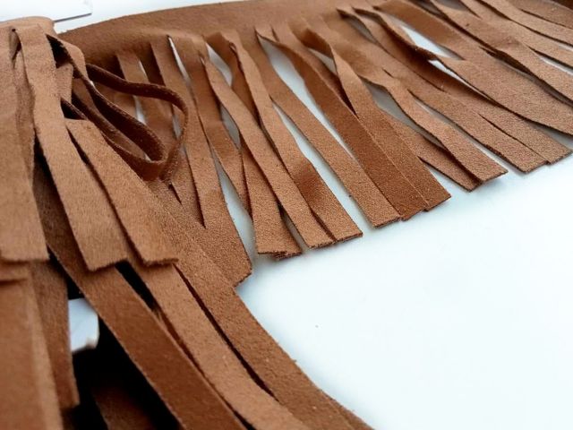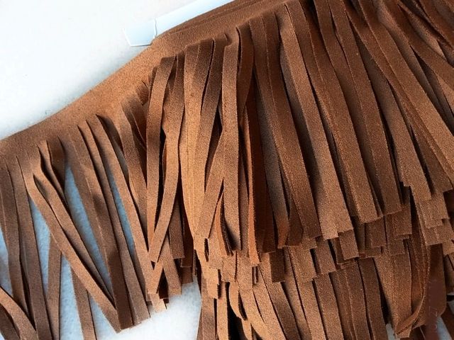 Frangia simil-camoscio, composizione tessile microfibra, altezza circa 10 cm. Made In Italy