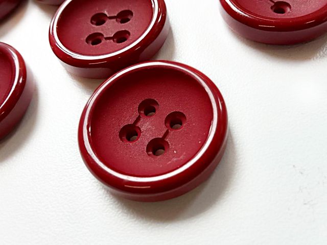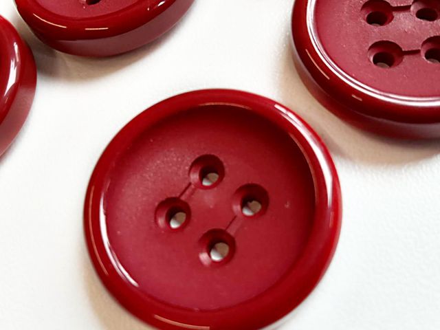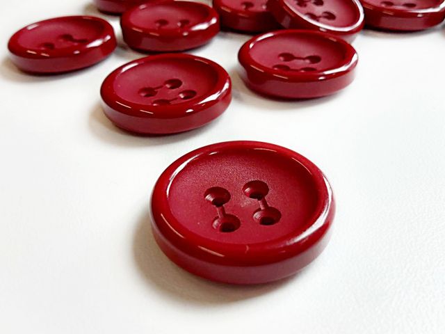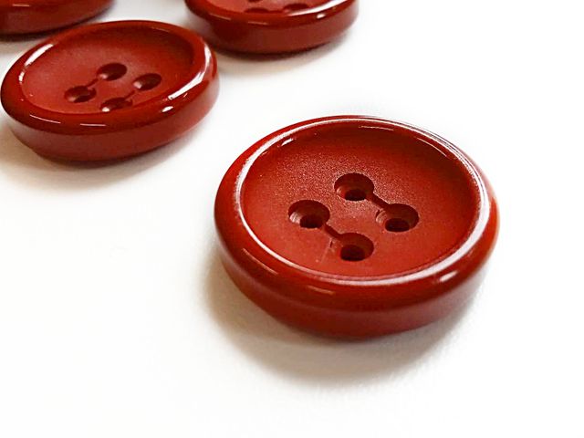 Bottoni quattro fori con orlo, unisex, disponibili nel colore rosso India, diametro 25 mm, made in Italy.