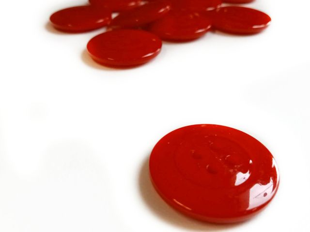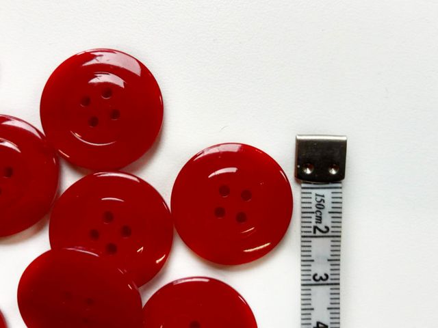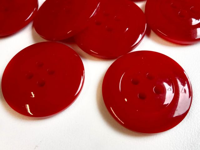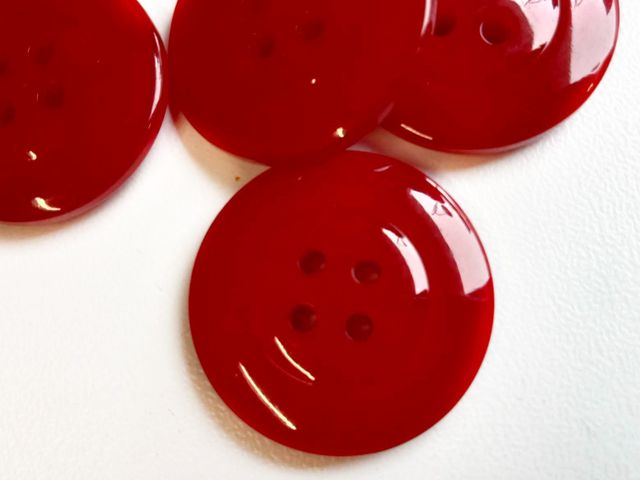 Bellissimi bottoni rossi, quattro fori unisex, diametro 25 mm. Made in Italy.