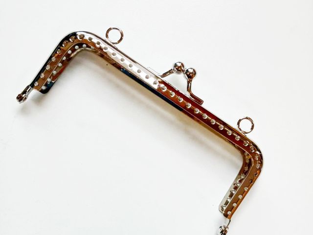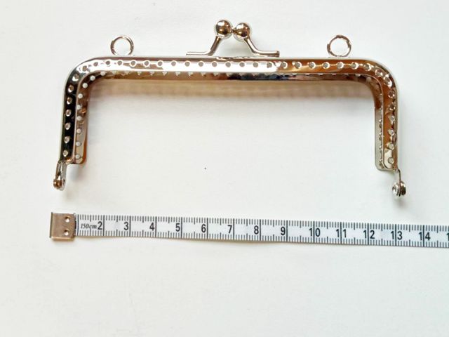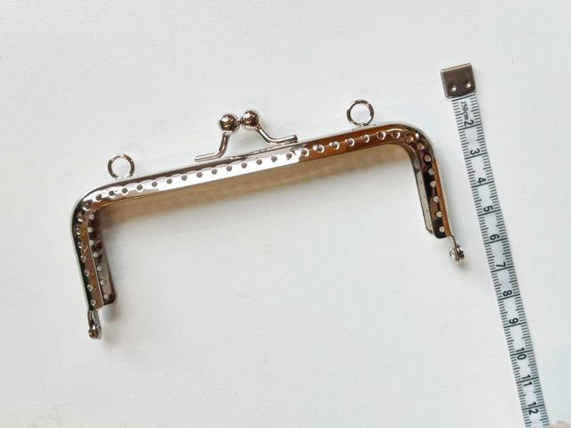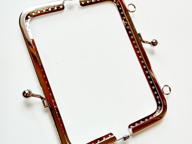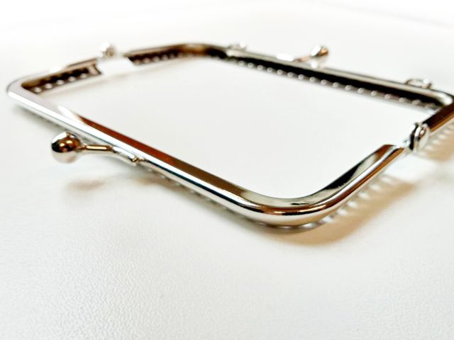 Chiusura borsellino in acciaio, forma rettangolare, misura in larghezza cm. 12, altezza cm.6,5. Made in Italy.