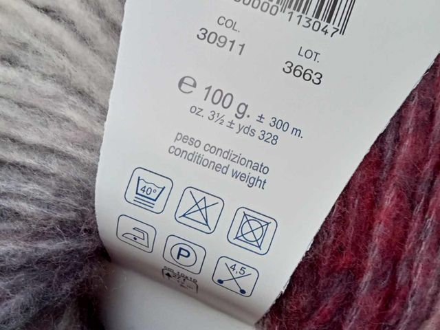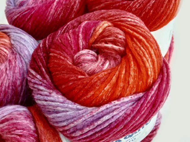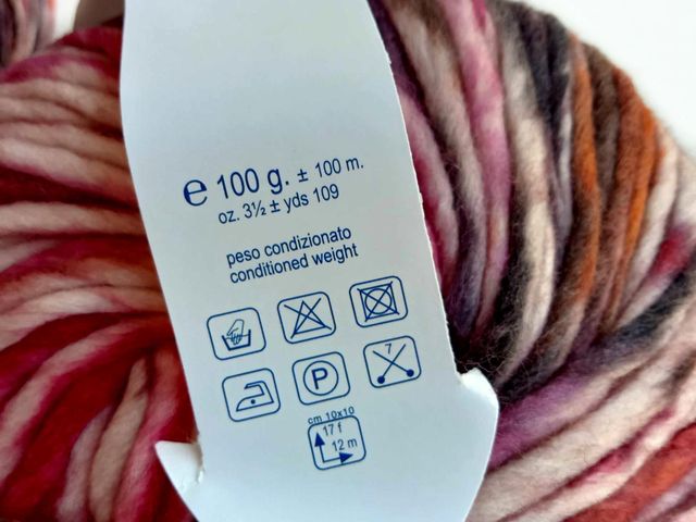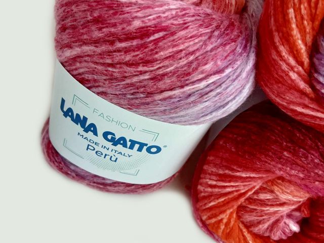 Bellissimo filato Lana Gatto moda 2025, disponibile nel colore rosso fantasia, composizione tessile : 63% lana, 24% cotone, 10% poliammide, peso gomitolo 100gr. lunghezza filato 230 mt. Made in Italy