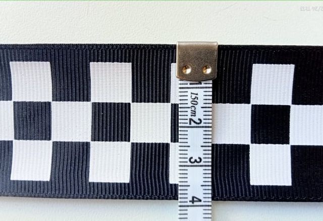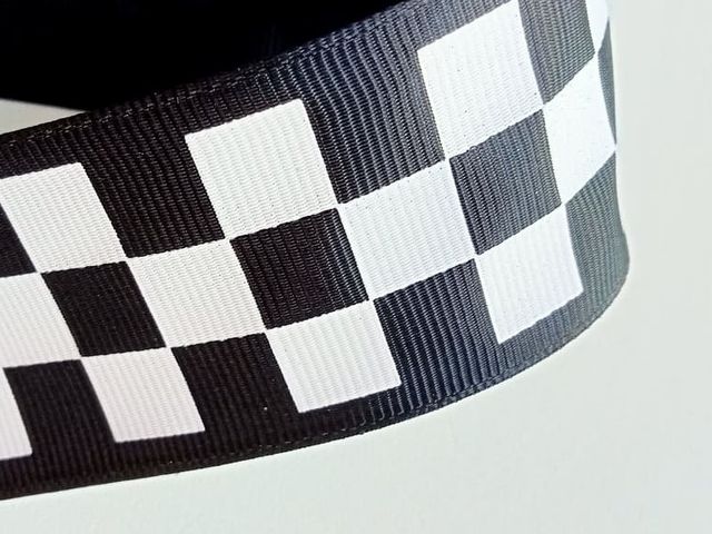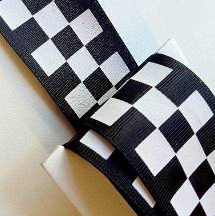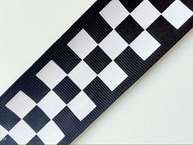 Passamaneria nastro gross-grain quadri biancoe nero, altezza circa 38 mm. poliestere. Made in Italy. Ideale per abbigliamento, arredamento, hobby.