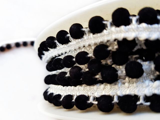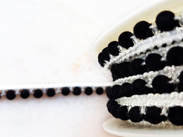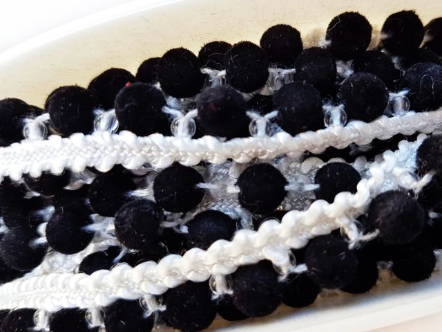 Passamaneria pompom avorio e nero, moda 2025