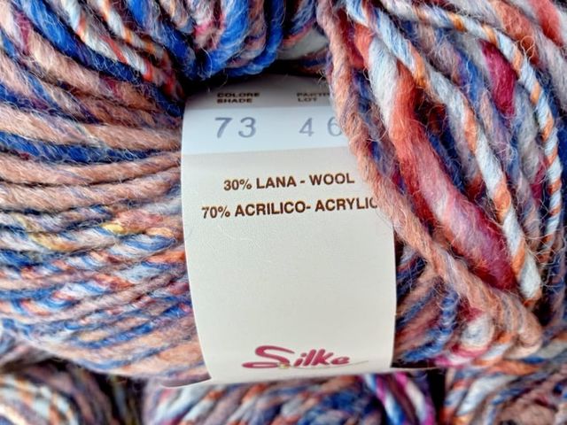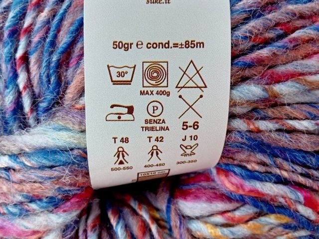 Offerta sconto; filato fantasia, composizione 70% acrilico, 30% lana, peso gomitolo 50 gr, 85 m, ferri consigliati n° 5/6. Made in Italy
