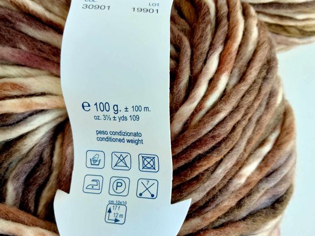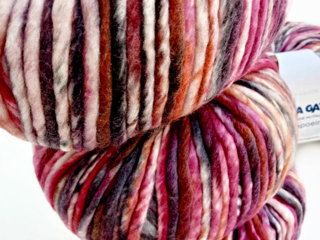 Maxi gomitolo Lana Gatto art. Sombrero, filato fantasia, 86% lana vergine extrafine, 14% poliammide, peso gomitolo 150 gr, 300 mt. Made in Italy.